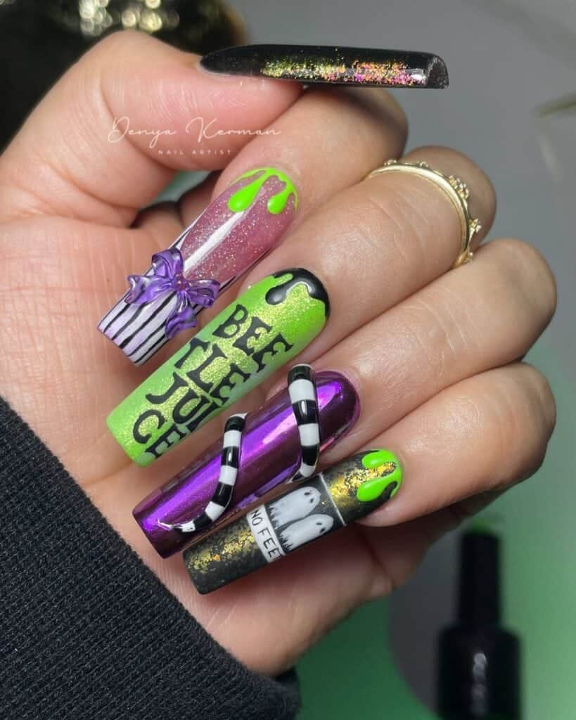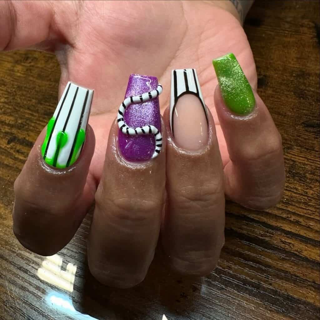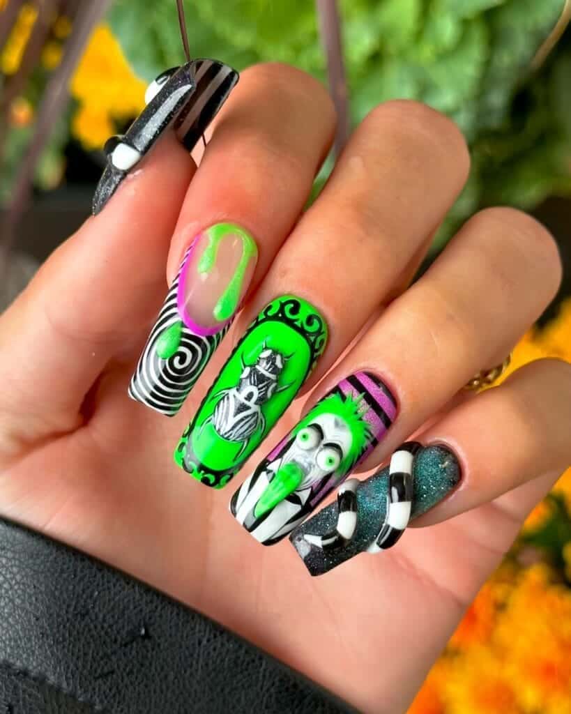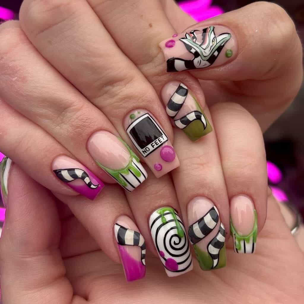 Beetlejuice nail art designs: 20 Halloween-ready manicure ideas