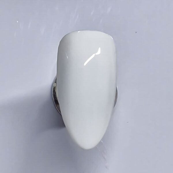 After prepping the nail, apply a gel polish base coat and cure. (Note: all mentions of curing should adhere to the specific instructions of your chosen gel polish system). Apply two layers of white gel polish, curing after each layer.