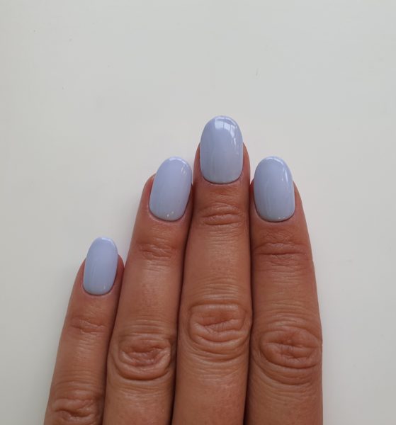 First start by prepping the nails by pushing back the cuticle using the Salon System Cuticle Handy Manicure Tool, file to shape and gently buff the nail using the Salon System Turbo Buffer. Remove excess dust and wipe with Gellux Prep & Wipe. Using Gellux Fast Bond, apply to the nail and let dry. Apply Gellux Easy Off Base Coat and cure. Next, apply a thin coat of Gellux in Stormy to the nails making sure to cap the edges and cure. Repeat this process for the second layer.