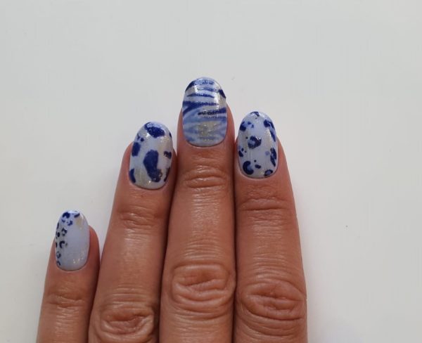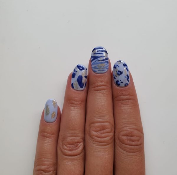 Put a spin on animal print with this detailed fresh blue design courtesy of Salon System Gellux expert, Karen Louise.