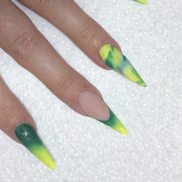 Apply your coloured acrylic. I've blended Lauren and Karen from the HD Professional Sisters of Summer collection. I've also used the same two coloured powders and marbelled in with polar white.