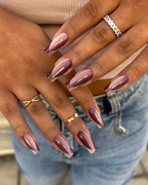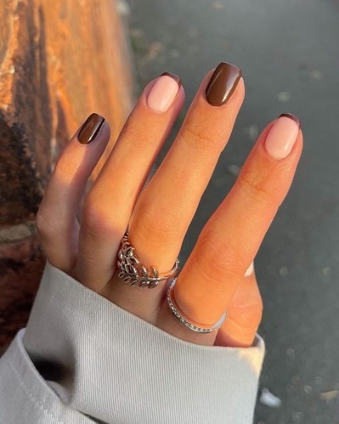 Embrace the elegance of earth tones with brown nails