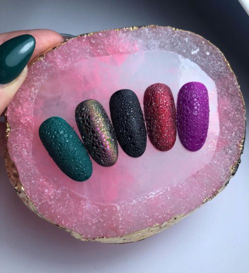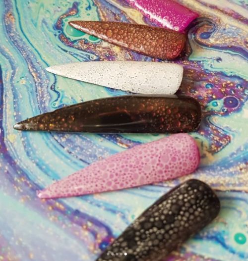 Be inspired by the bubble nails technique, which uses foam to create an eye-catching texture and design.