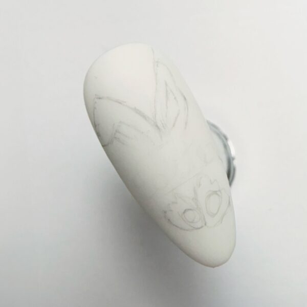 Gently buff the nail surface and make it matte using the Andreia Professional Halfmoon Buffer in 100/180-grit. Then draw the outline of the bunny design with a pencil.
