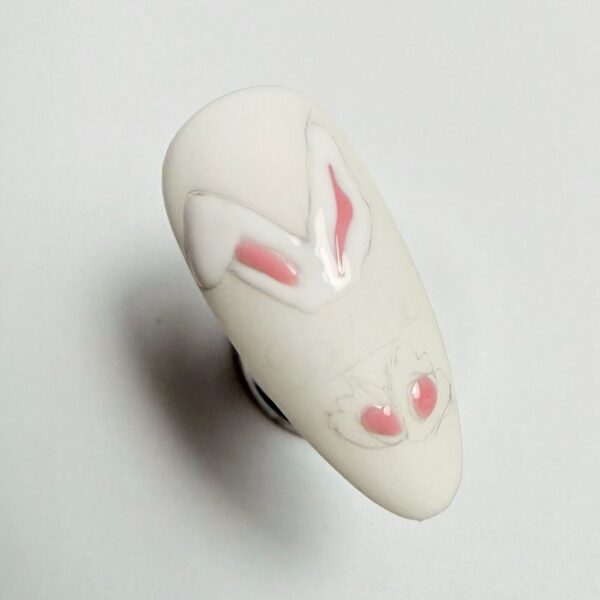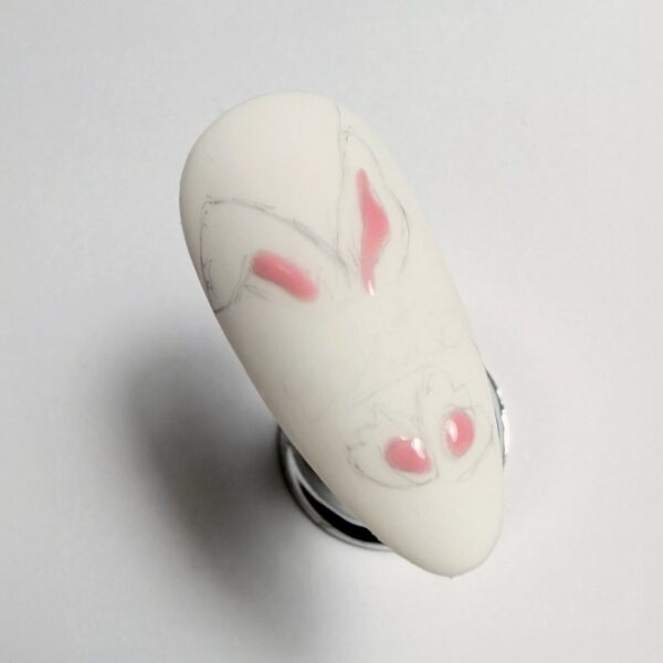 Paint the bunny's outer ears and paws using a clean Nail Art Brush Mini 000 and Andreia Professional Gel Paint in 01 White. Cure for 60 seconds.