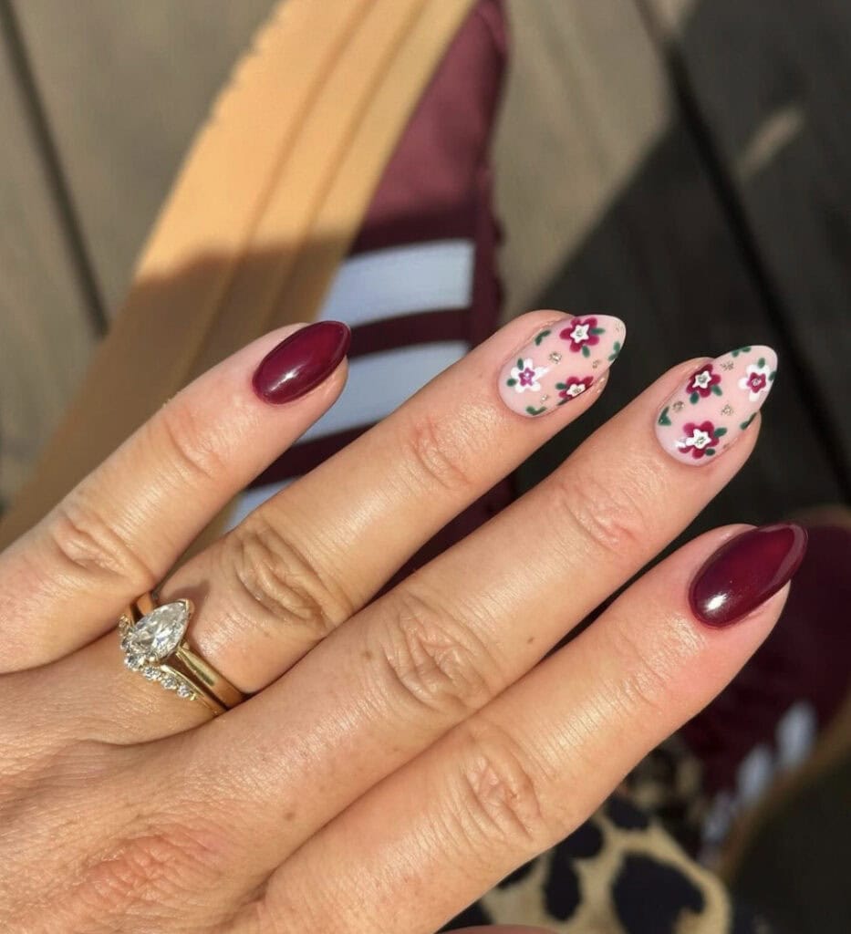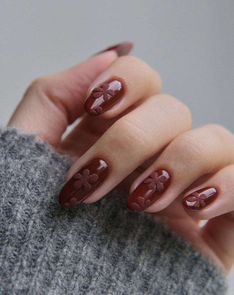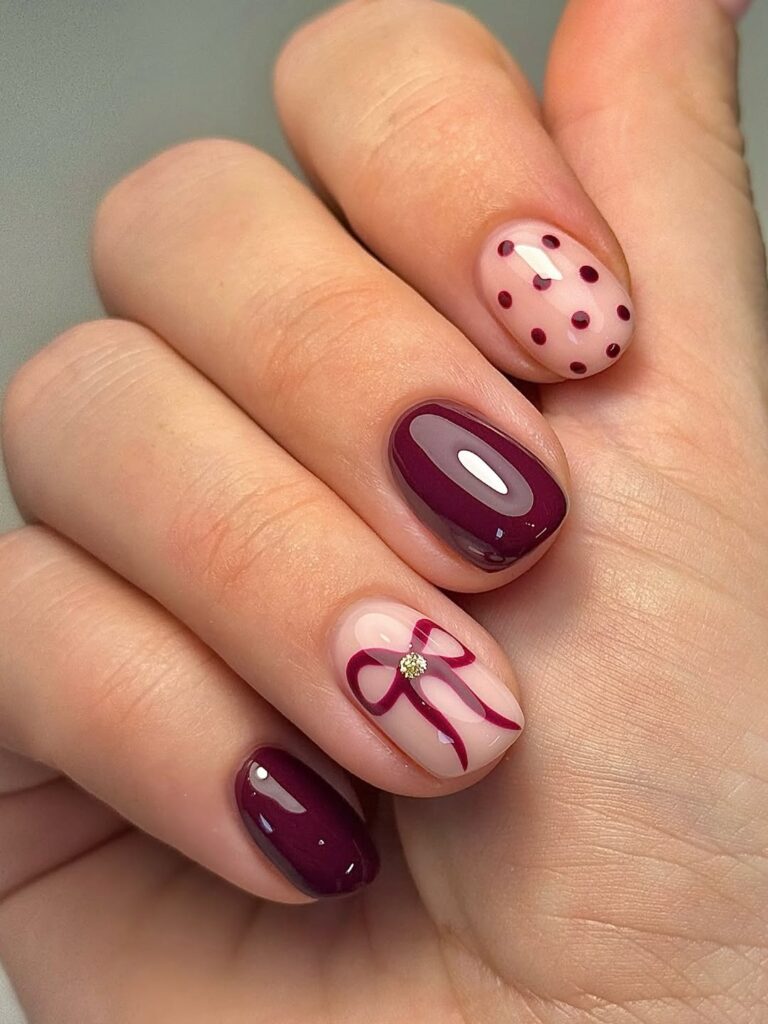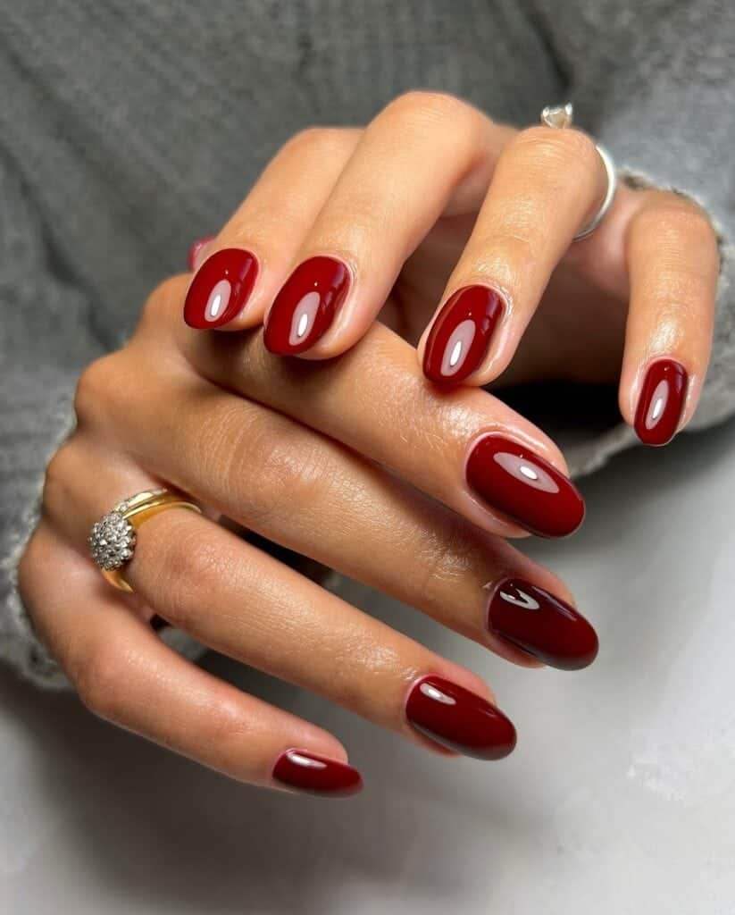 ‘Tis the season for burgundy manicures, showcasing the deep purple-red hue.
