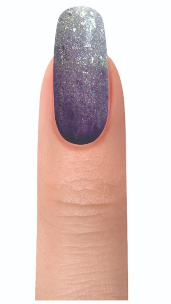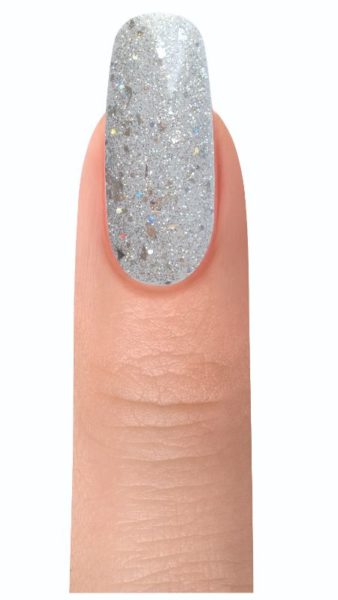 After completing your Gelish nail prep, apply a thin coat of Sprinkle Of Twinkle onto the entire nail making sure to cap the free edge. Cure for 30 seconds in the 18G LED Light. Repeat for full coverage.