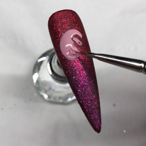 Using Magpie Beauty Gel Colour in Cotton Candy and the Illustrator Brush, paint a circle towards the top of the nail and cure.