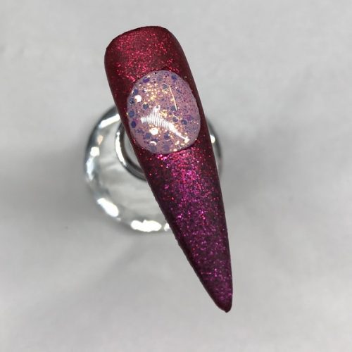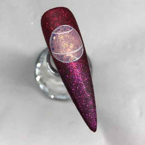 Apply Magpie Beauty Nail Glitter in Flossy to the tacky layer of the circle, and apply top coat over the circle. Cure.