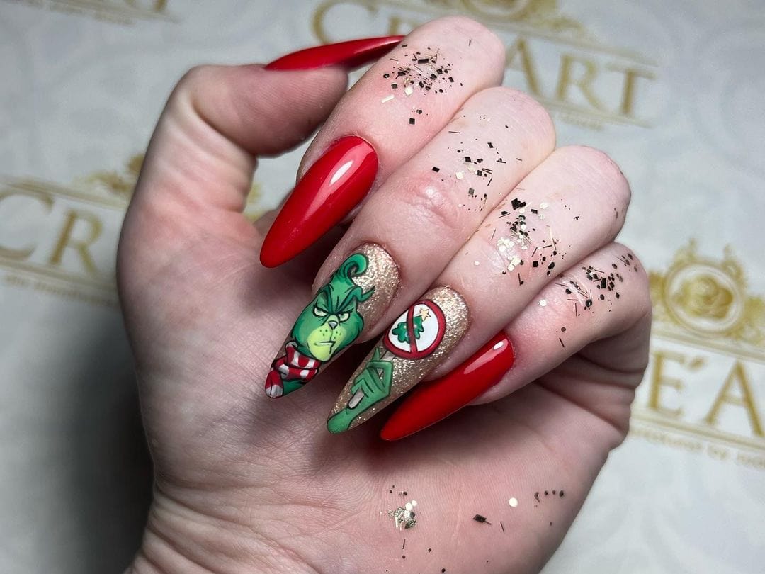 We’ve rounded up standout nail styles inspired by Christmas film characters below…