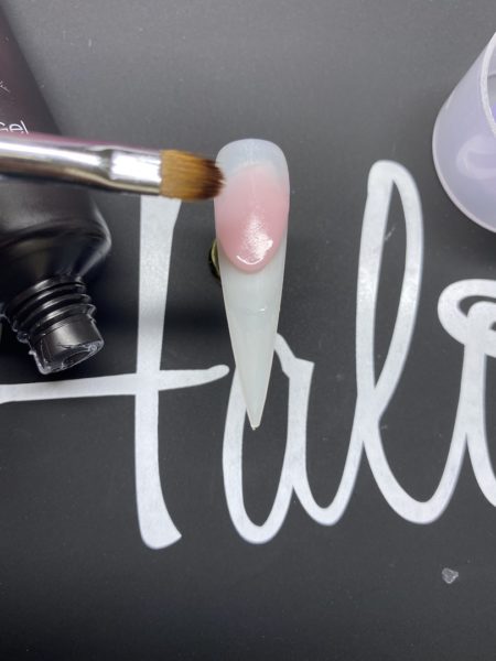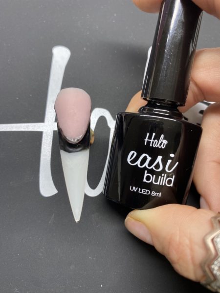 Choose your product of choice to create a reverse base. I chose Halo Polibuid in Sheer Pink.