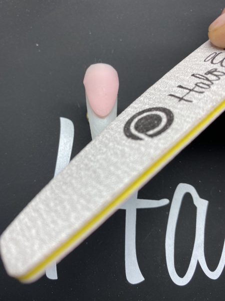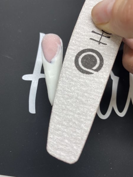 Buff the nail to shape and reveal the shadow design.