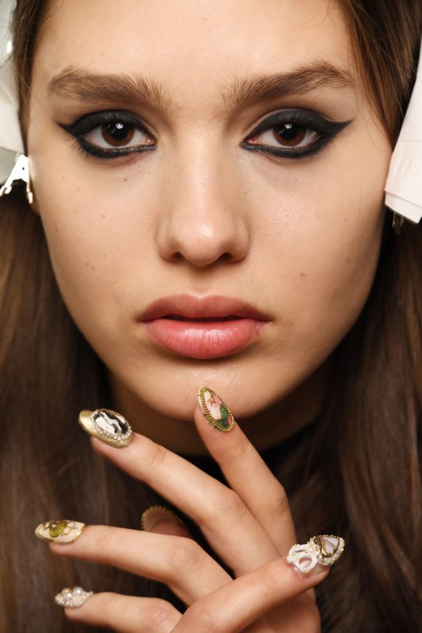 Led by nail artist, Heather Reynosa, the CND™ Design Lab Team drew inspiration from Petit Point embroidery, one of the oldest forms of impossibly fine cross stitch needlepoint, for the nails. Antique roses, Victorian pearls, vintage stones, 24k gold frames, aged pastels, monogramed signets and intimate keepsakes all features. They aim to tell an intricate story of a yearning for the past and a thirst for what’s to come.