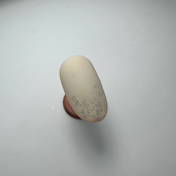 Craft 3D ears using white L&P acrylic on an Arabella form. Apply gold metallic details and adhere to the nail.