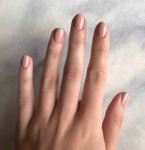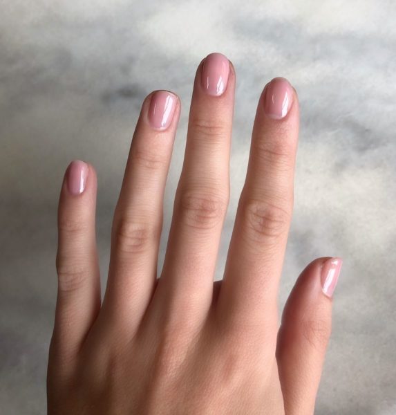 Apply one coat of Gellux Cover Pink Base Coat and cure.