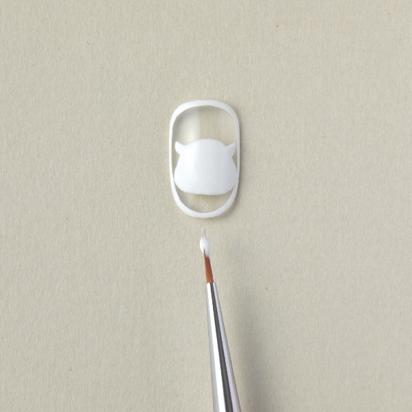 Add a glossy top coat to the cheek details and cure to finish the design.