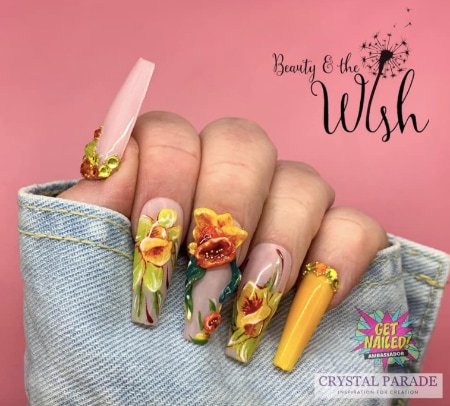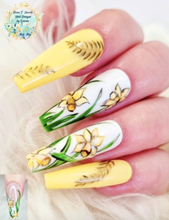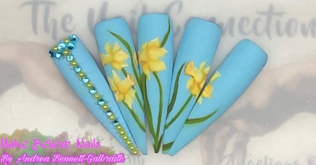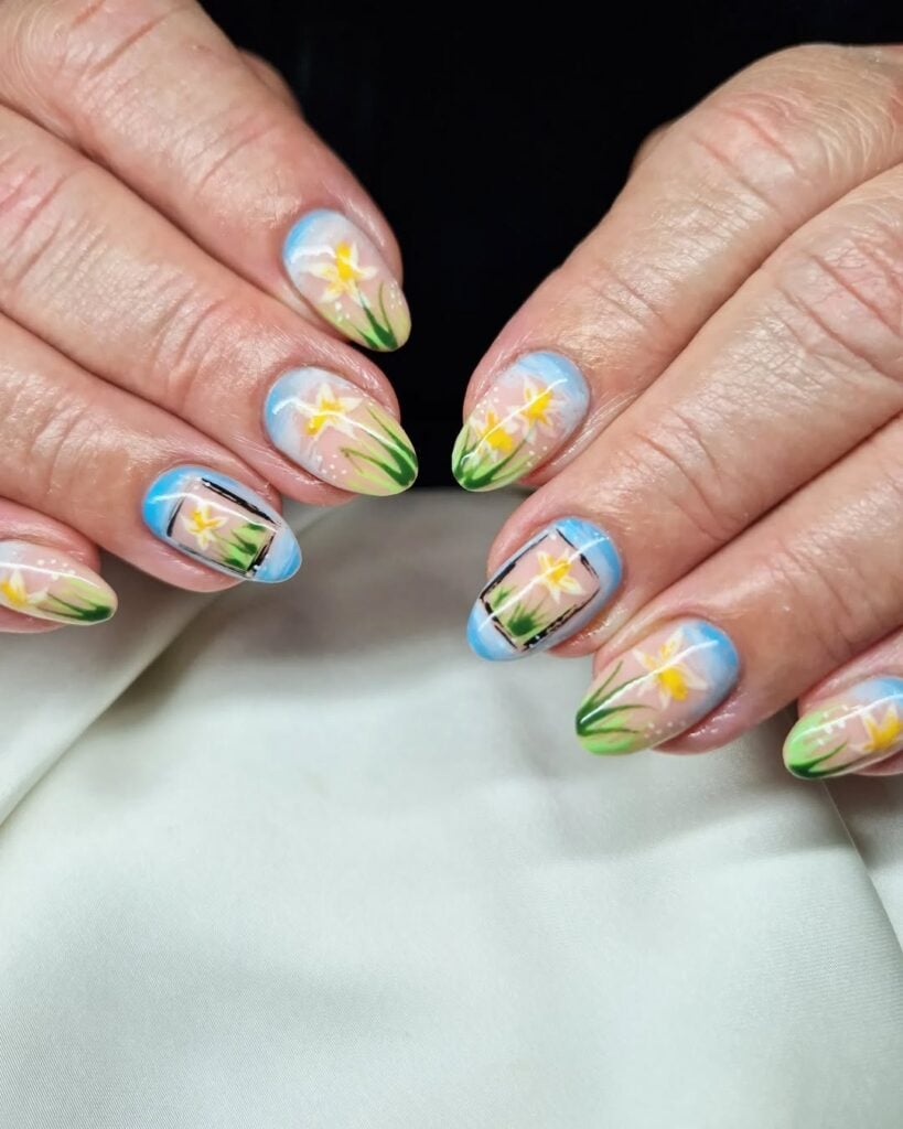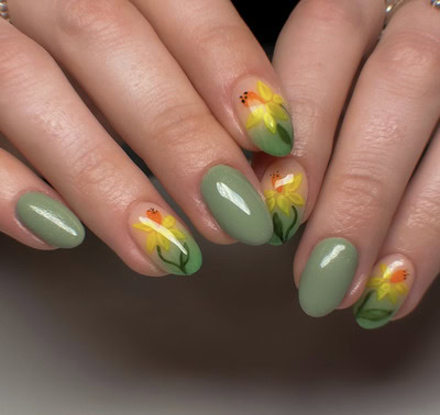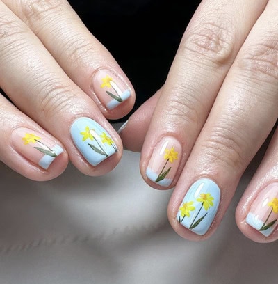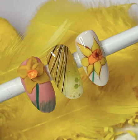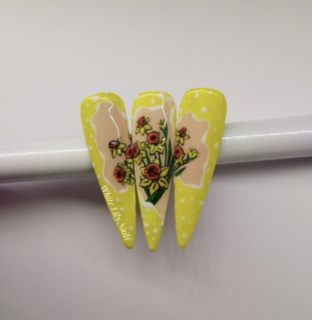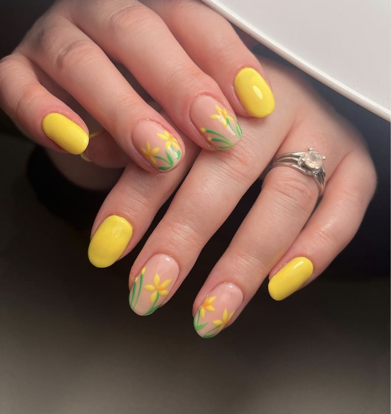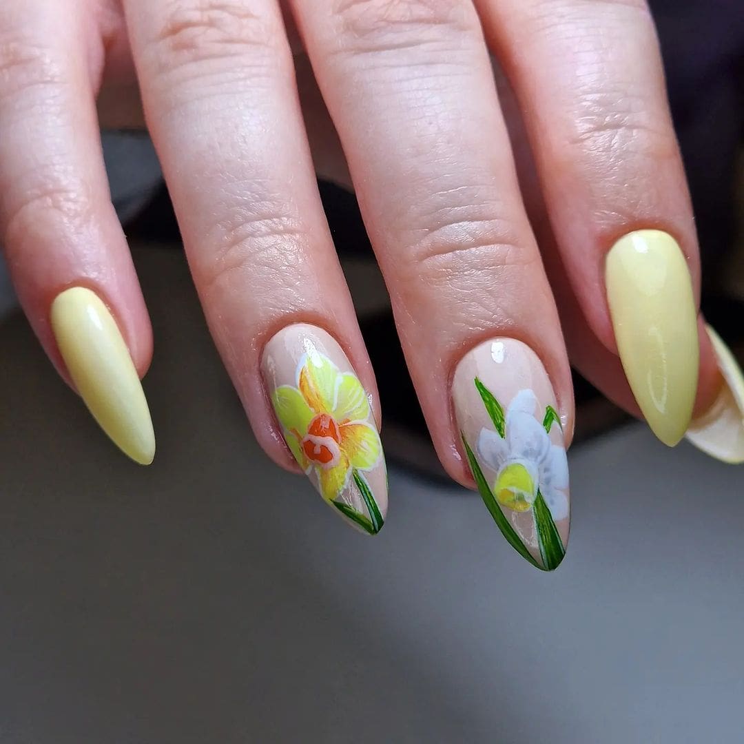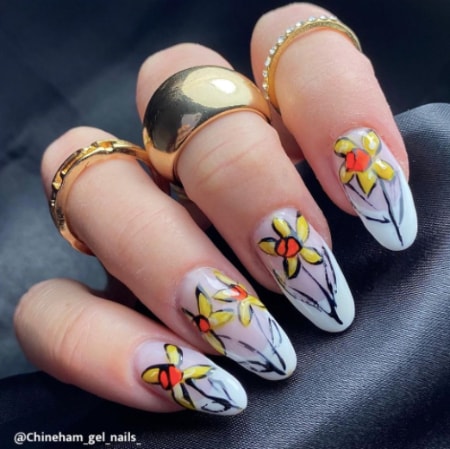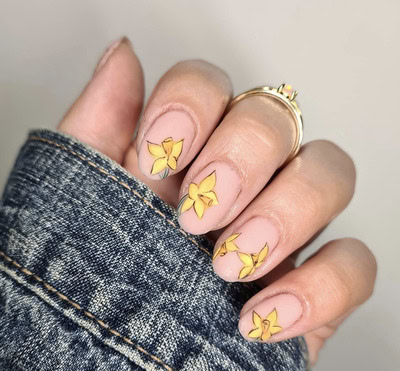 Explore daffodil-themed nail designs by pros below…