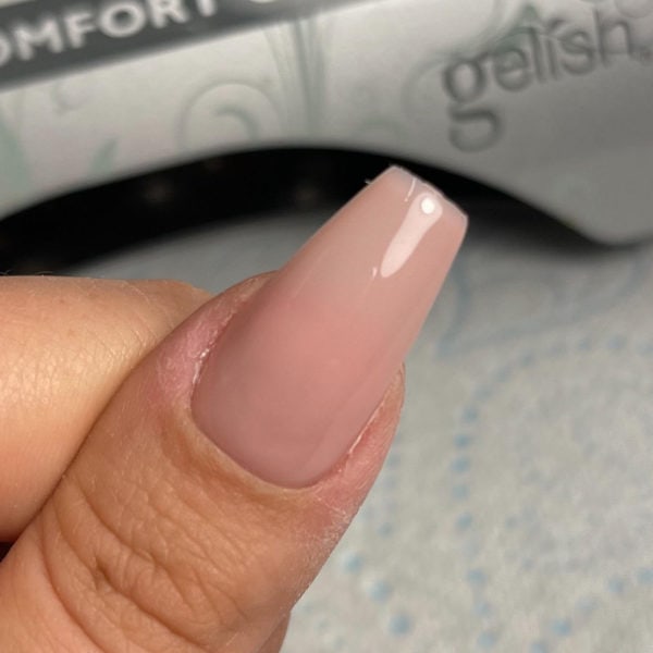 Over a Soft Gel extension, apply Gelish shade, Breathing Dreams and cure.