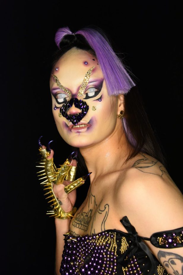 Nails were long and many razor-sharp with stiletto tips to convey danger. Bold textures mixed to create the finished looks; including sleek, eel-like skin, reflective metallic fragments and 3D embellishments.