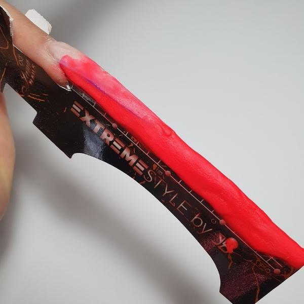On the free edge, apply Glitterbels Coloured Acrylic Powder in Dragon Fruit and Queen Bee.