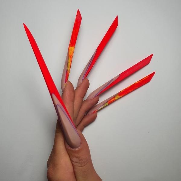 Multi award-winning nail tech & educator, Andreea Simona Ignat, shares the process behind creating this extreme French style, using Glitterbels.