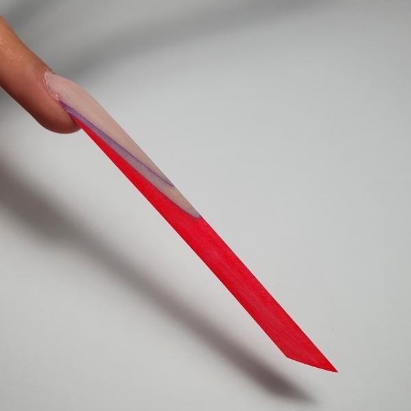 Crop and fit the nail form according to the shape of the natural nail. Apply a thin layer of Glitterbels Core Acrylic Powder in Glass Slippers (clear).