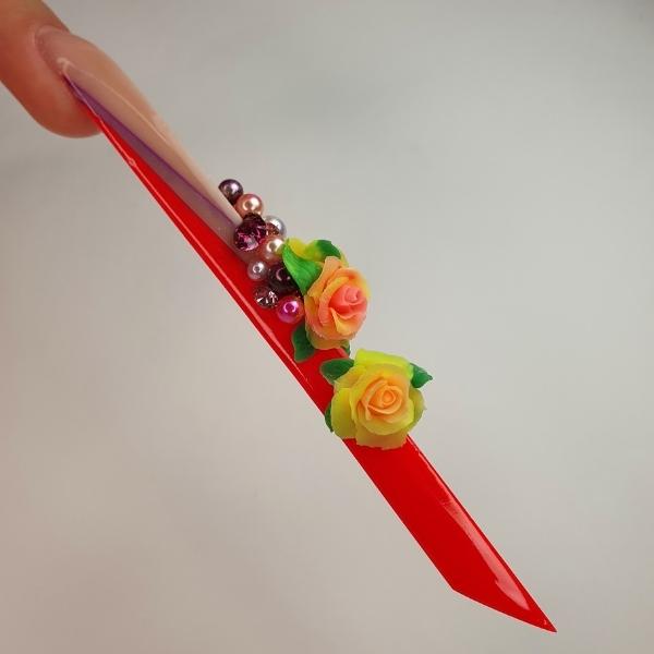 Remove any dust before applying Glitterbels No-Wipe Top Coat. I added some handmade 3D plasteline roses for wow factor.