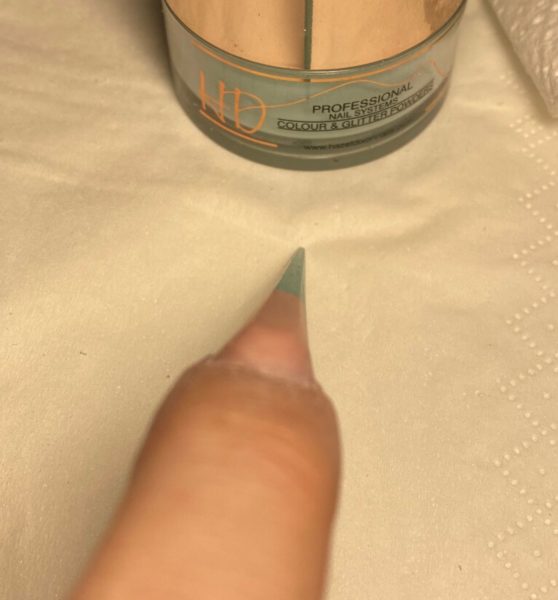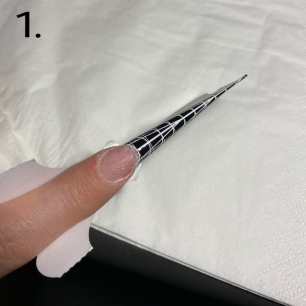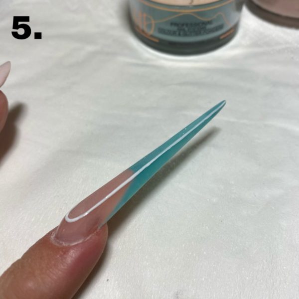 Apply HD Pro nails in Peppermint Cream to the free edge. Press the product towards the centre of the nail as for a stiletto nail.