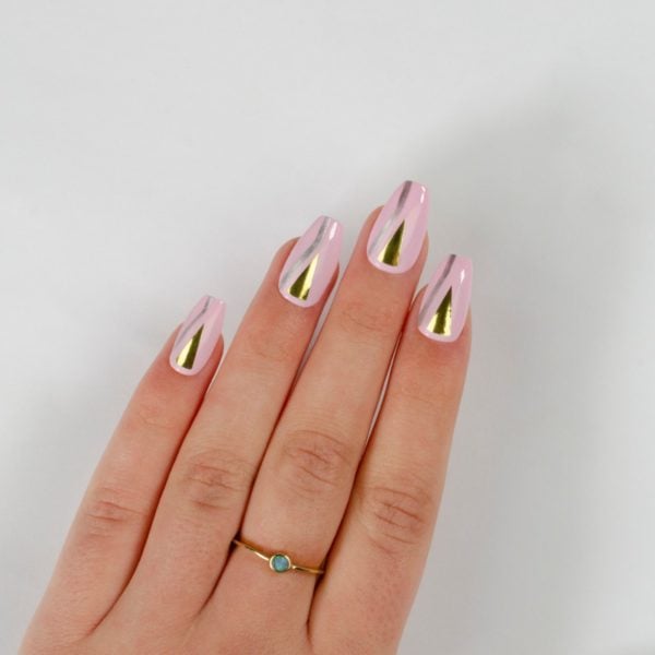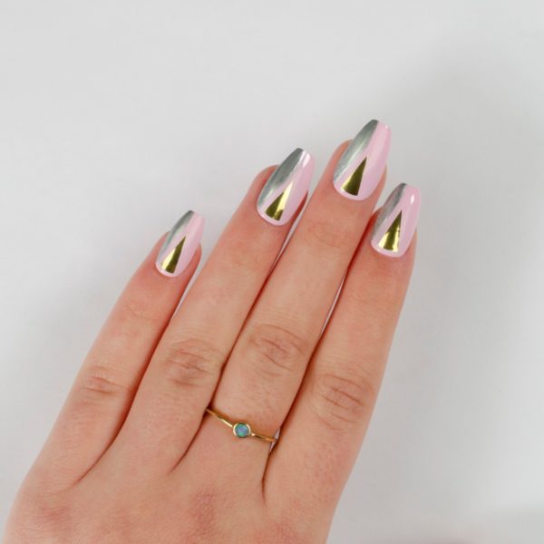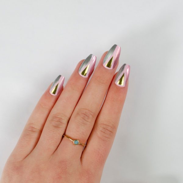 Repeat steps 4 and 5 on the other side of the nail using Ball Gown Satin Chrome Nail Lacquer. Wait for the polish to dry thoroughly before applying top coat.