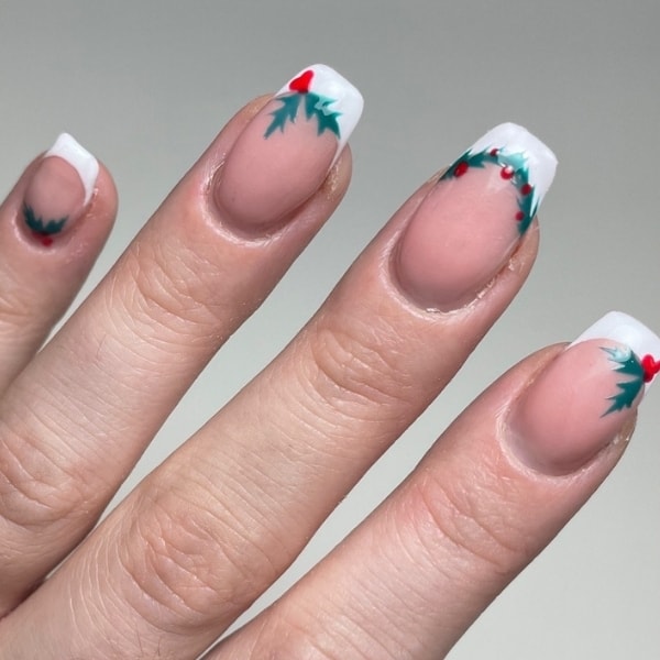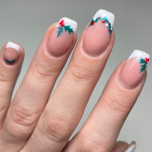 Festive French manicure tutorial: how to achieve Christmas holly nails