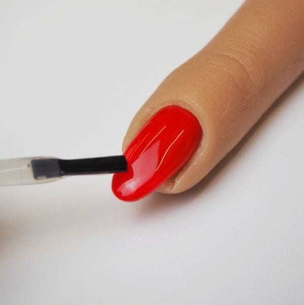 Apply a liberal amount of top coat, cap the free edge and cure.