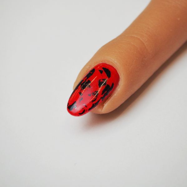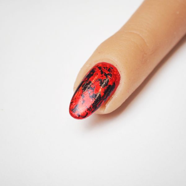 Tap the Red Shimmer Foil onto the nail, filling the gaps.