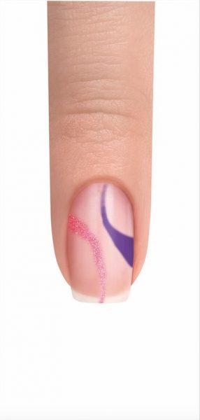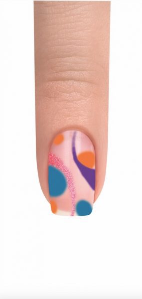 With the Mini Striper Brush and LIMÓNADE IN THE SHADE, fill in the empty areas of the nail with abstract shapes. Cure for 30 seconds.