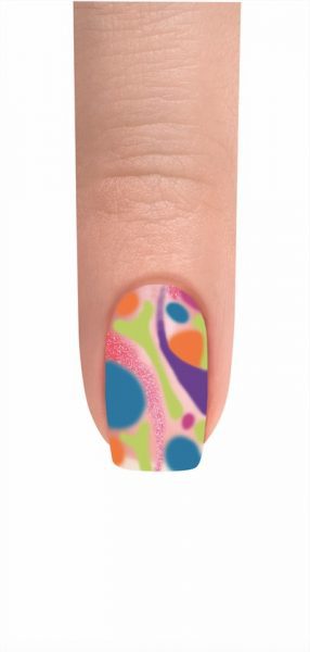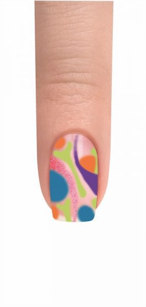 Emma Luu, certified Gelish educator, uses an assortment of shades from the brand’s Make A Splash summer 2018 collection to create this colourful nail art design.