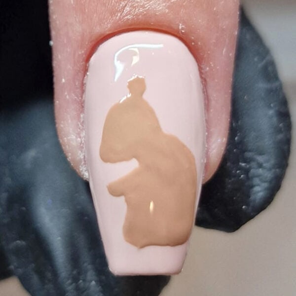 Once the nail is prepped and base colour applied, paint a rough outline of a squirrel. I mixed Nailchemy's White, Orange and Brown UV/LED Artisan Gel Paints to create this colour. Cure for 60 seconds.