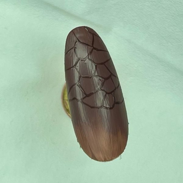 Use brown Aeropuffing LED Colour Gel Paste and a fine nail art brush to replicate the cracked effect found on chocolate Easter eggs.