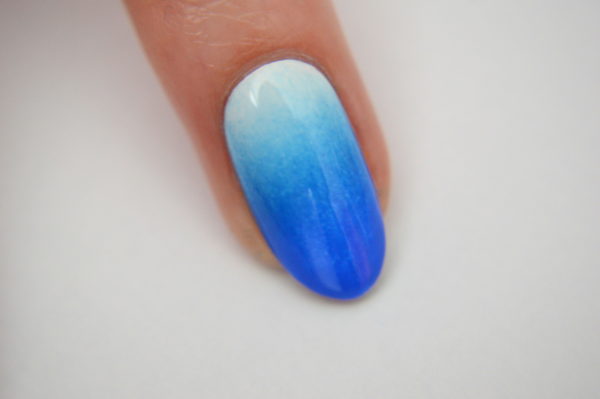 Using a sponge and a range of blue polishes create a gradient.