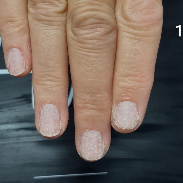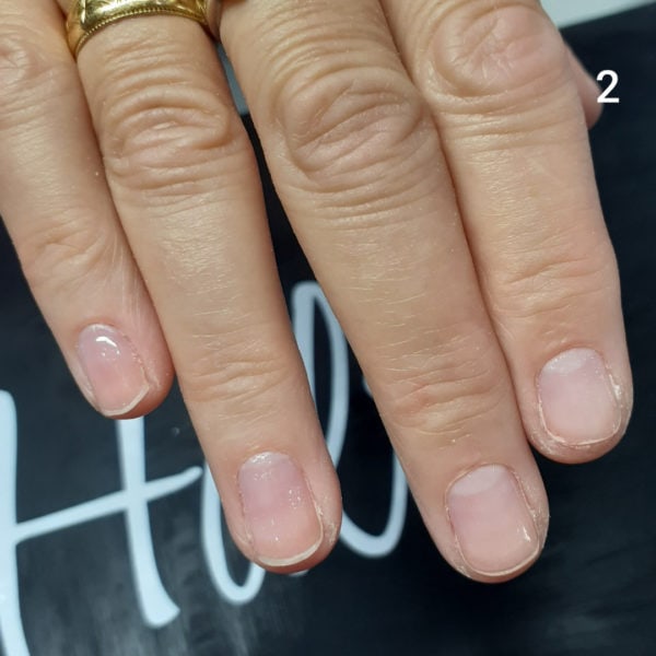 Prep nail, and use Halo Prep and Scrub to dehydrate the nail plate.