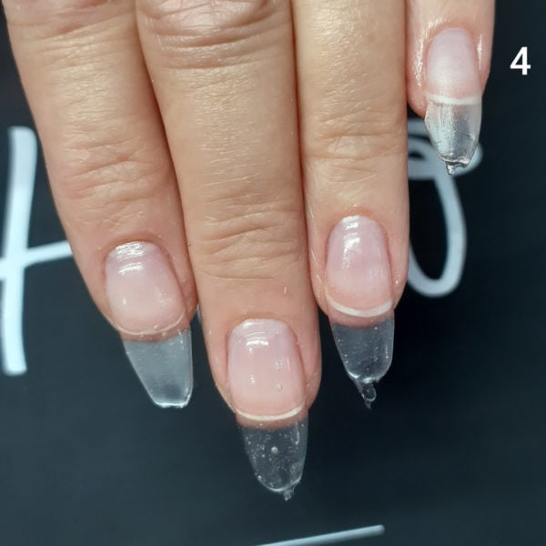 Using PoliBuild in the shade Clear, create a very thin base layer and cure for 60 seconds.