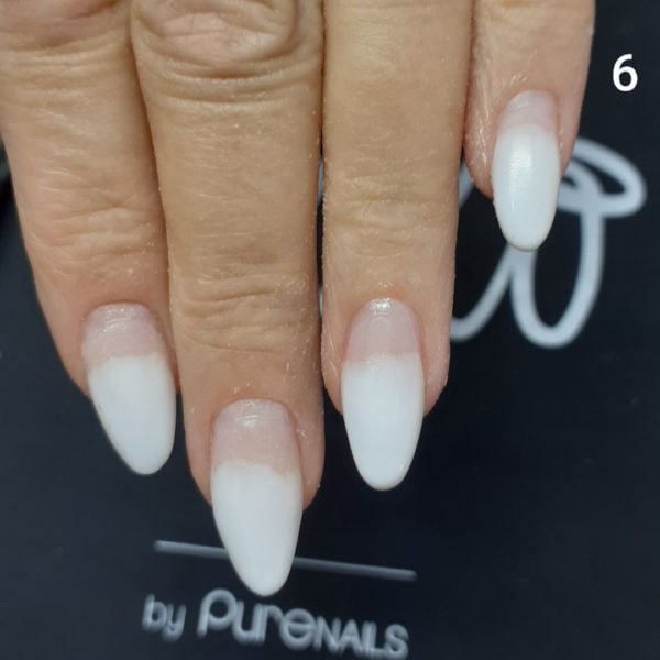 Cap your Bright White in PoliBuild in the shade Clear and cure for 60 seconds.