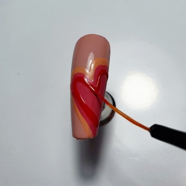 Paint another, smaller heart shape within the existing heart, using Halo Gel Polish in Rose and filling it in. Cure again.