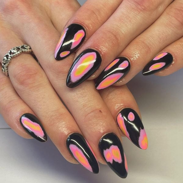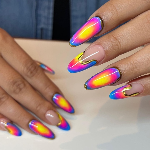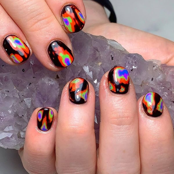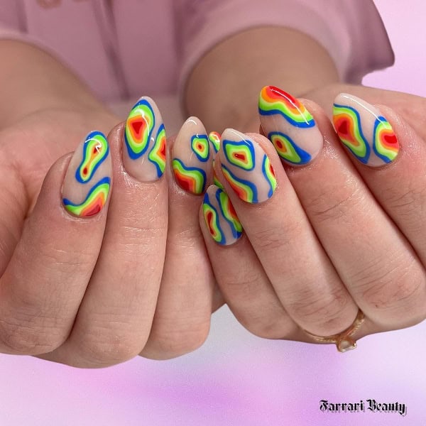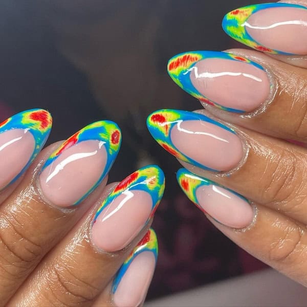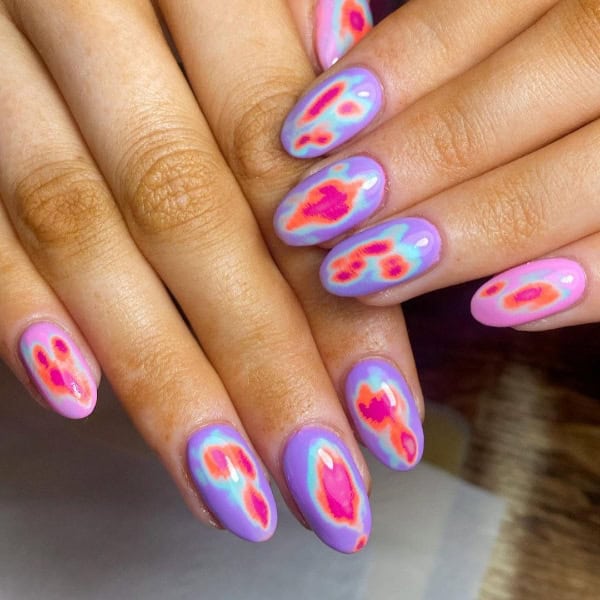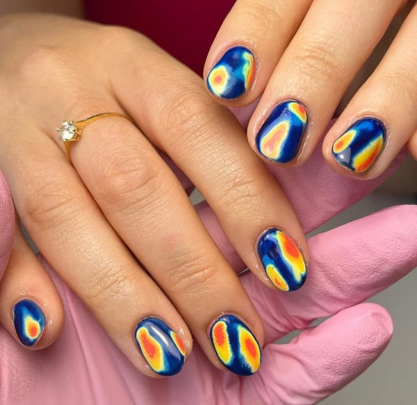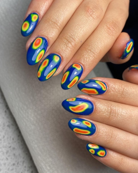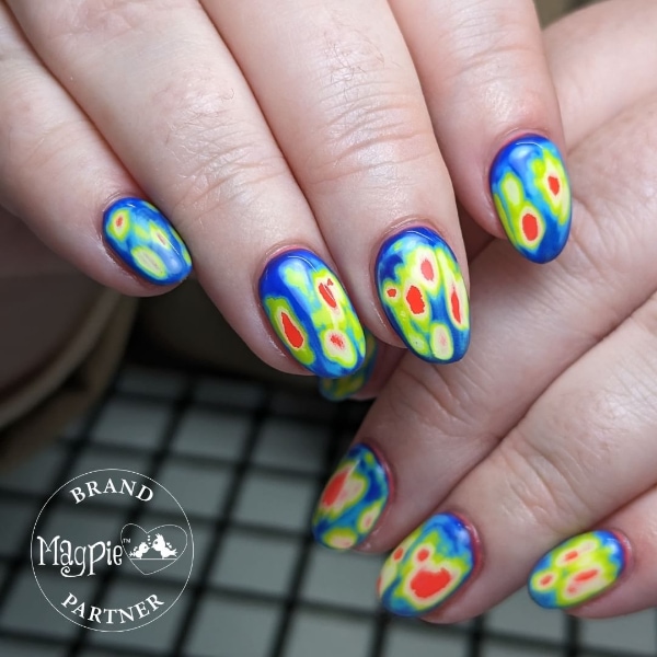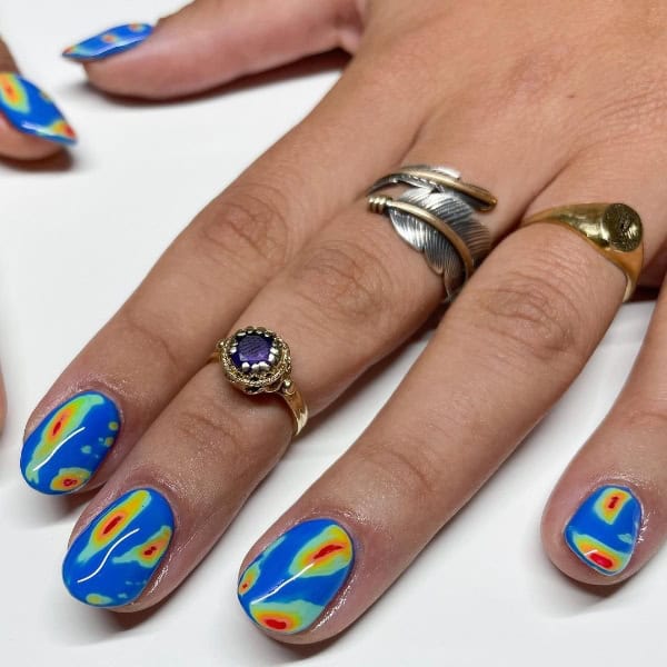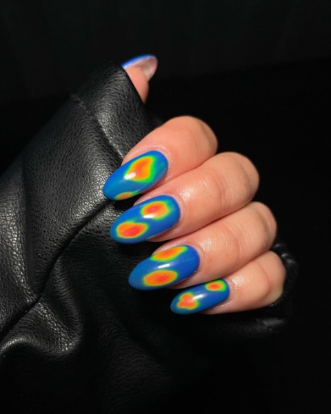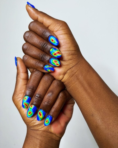 Switch on the weather channel and heat up your nail art game with heat map nails, pulling inspiration from multicoloured geothermal maps to create this colourful layered nail look. Check out our roundup of 15 thermal-themed reader designs…