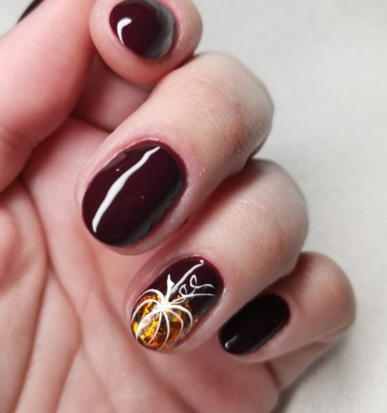 Monika Kupien reveals how to create this pretty pumpkin nail art finished with a touch of sparkle using Gelish products, available via www.gelishmorgantaylor.co.uk / www.nailharmonyuk.co.uk / www.salon-services.com