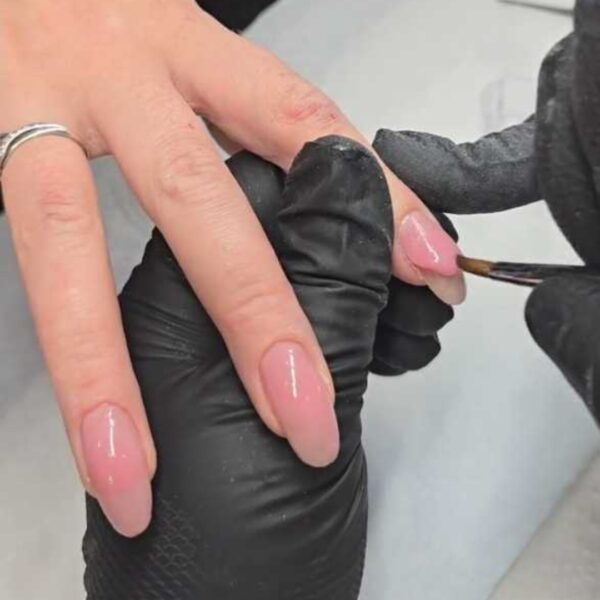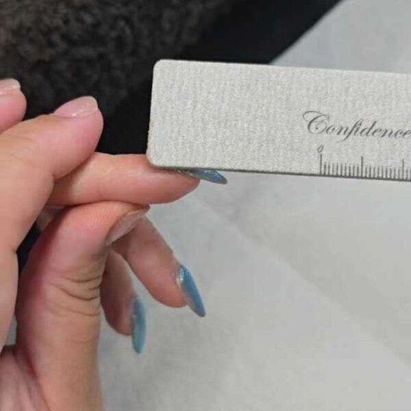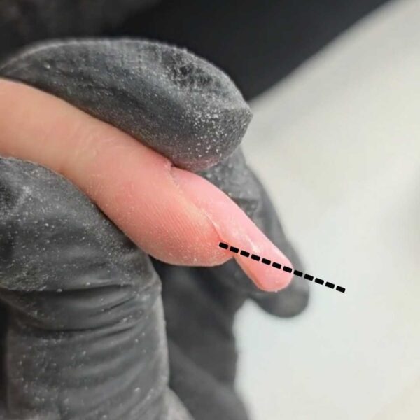 Check how hooked the nail is, using a straight file to work out how much product is needed and how much needs removing.