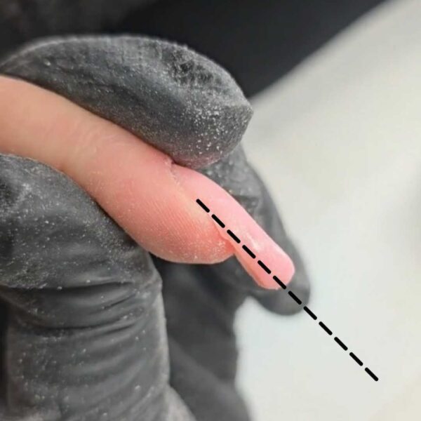 If the nail is square, this image demonstrates what would need to be removed from underneath.