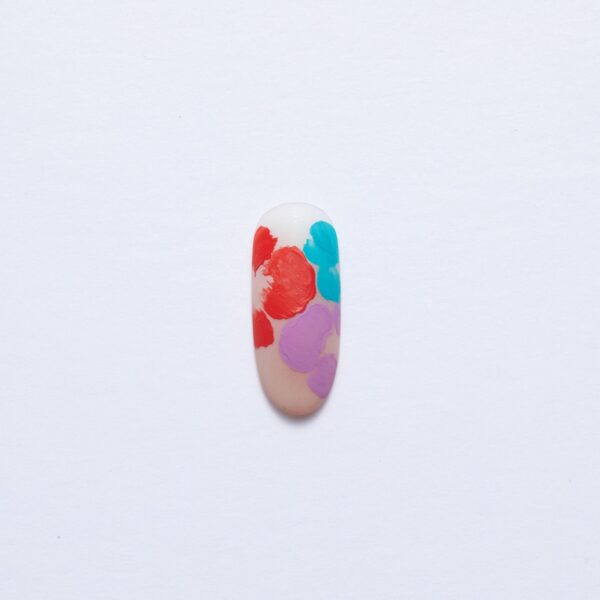 Airbrush AIRGEL's 85 colour in the centre of the flowers and flash cure. Top tip: if you want to soften the shades, spray a mix of AIRGEL Nail Color Liquid Dilution and the colour.