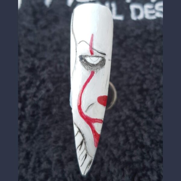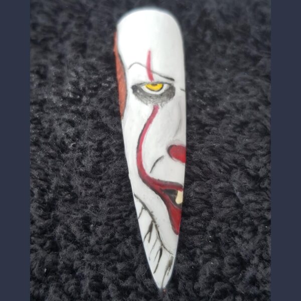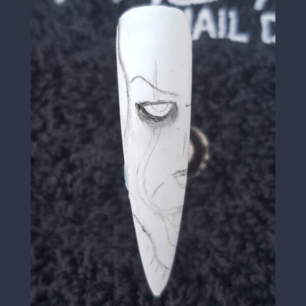 Using a fine, sharp pencil, draw Pennywise onto the nail.