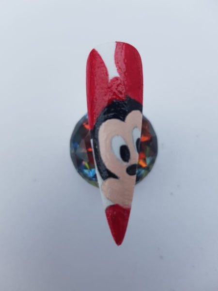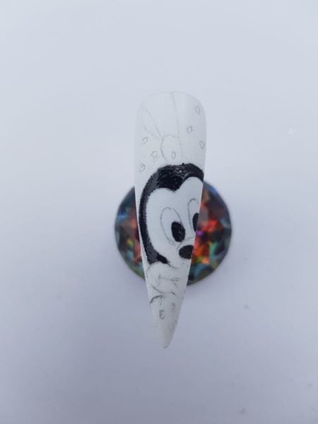 Paint the black parts of Minnie - the nose, eyes and outer part of the face. I used Artistic Colour Gloss in Swag. Flash cure, unless you are nervous you may disturb the polish, in which case cure for 30 seconds. Apply a second coat, if required, for depth of colour.