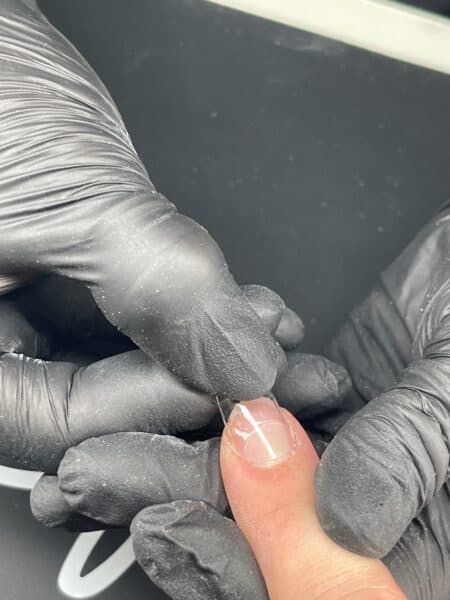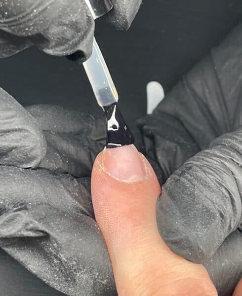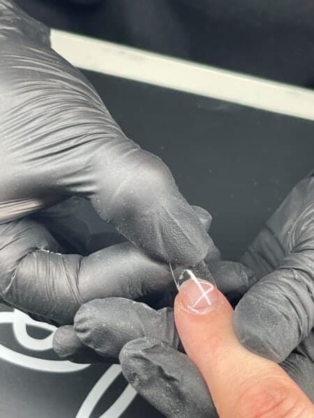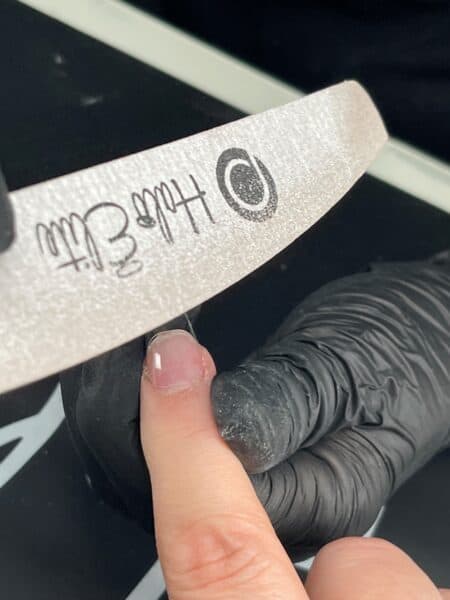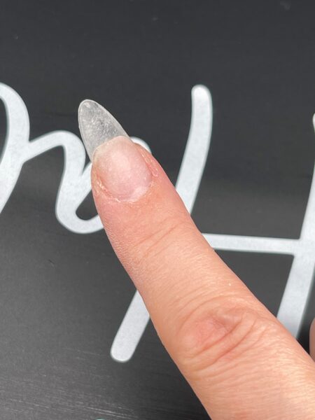 Size Halo Jellie Tips to the client’s nails, ensuring they fit perfectly from sidewall to sidewall, without needing to push the tip flat to the nail.