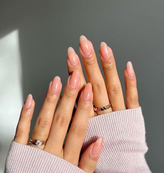 Sweet and simple styles seem to be dominating nail trends of late: just take 2023’s newest trend, lipgloss nails. Mimicking the glossy finish of lipgloss, the look is a more natural take on 2022’s hottest style, glazed donut nails, and adds a sheer layer of shiny colour over the natural nails, for a versatile and timeless design.